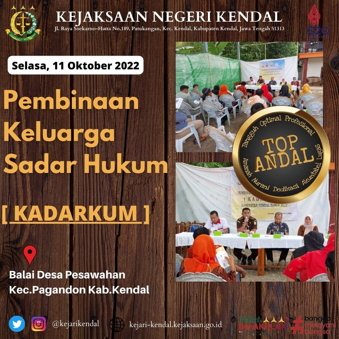 Pada hari Selasa tanggal 11 Oktober 2022 jam 09.00 Wib , Kepala Seksi Tindak Pidana Umum Kejari Kendal ( BUDI SULISTYO, S.H) sebagai Narasumber Pembinaan Keluarga Sadar Hukum (KADARKUM)
