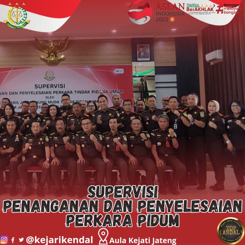 Kamis, 27 Juli 2023 pukul 08.00 Wib bertempat di Aula Kejaksaan Tinggi Jawa Tengah, Kepala Kejaksaan Negeri Kendal Erny Veronica Maramba, S.H.,M.Hum,Kepala Seksi Barang Bukti dan Rampasan Dany Bramondoko,S.H.,M.H. dan Kasubsi Penuntutan, Eksekusi & Eksaminasi pada seksi tindak pidana umum Mengikuti Supervisi Penanganan dan Penyelesaian Perkara Tindak Pidana Umum oleh Sekertaris Jaksa Agung Muda Tindak Pidana Umum pada Jajaran Kejaksaan Se- Jawa Tengah.