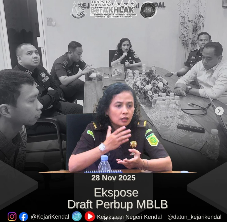 Pada hari Selasa, 28 Oktober 2025 sekira pukul 12.00 WIB, bertempat di Ruang Kerja Kajari Kendal, Plh. Kepala Kejaksaan Negeri Kendal Dr. Rara Ayu, bersama para Pejabat Utama, dan Jaksa Pengacara Negara, melaksanakan ekspose draft Perbup Mineral Bukan Logam dan Batuan (MBLB) Kabupaten Kendal.
