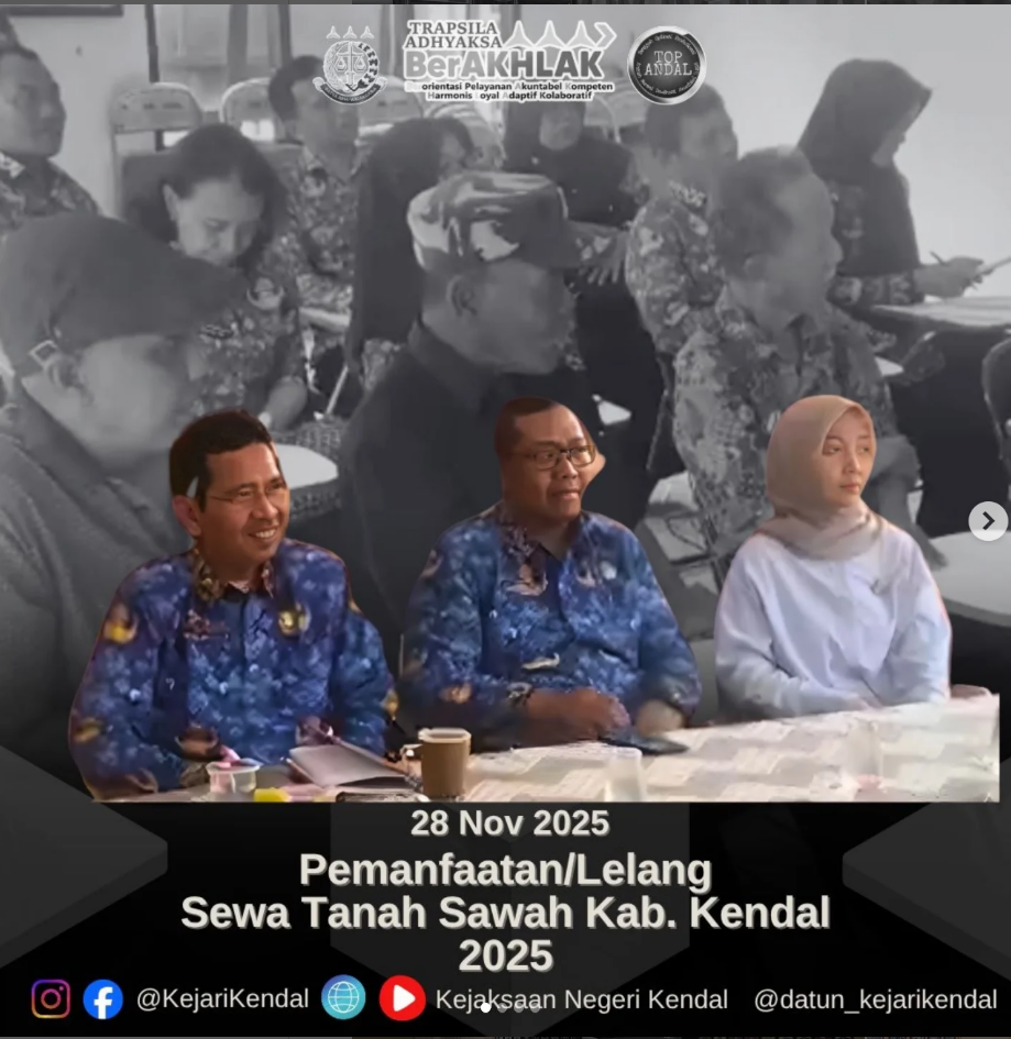 Pada hari Selasa, 28 Oktober 2025 sekira pukul 10.00 WIB, bertempat di Desa Balok, mewakili Kepala Kejaksaan Negeri Kendal, Kasubsi Pertimbangan Hukum Reni Savira Utami, S.H., menghadiri undangan Sekretariat Kabupaten Kendal untuk menyaksikan pelaksanaan kegiatan Pemanfaatan/Lelang Sewa Tanah Sawah Eks Bengkok dan Eks Bondo Desa Kabupaten Kendal 2025.
