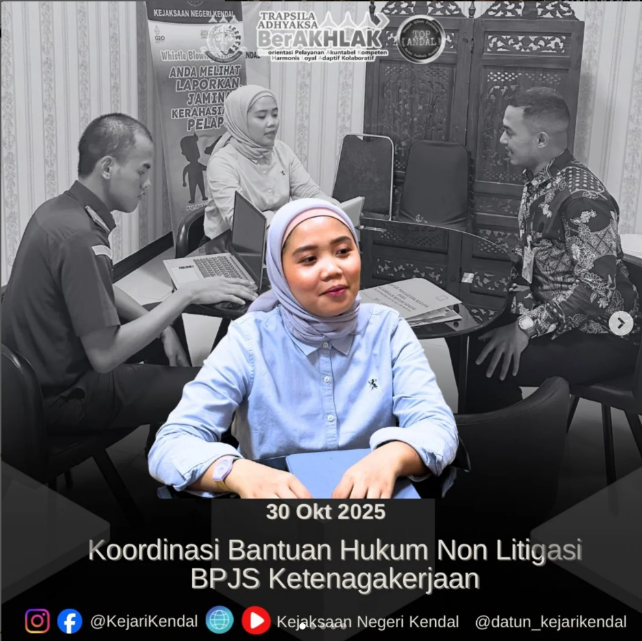 Pada hari Kamis, 30 Oktober 2025 sekira pukul 11.00 WIB, bertempat di Ruang Koordinasi dan Konsultasi, Kasubsi Perdata dan TUN Ni’matul Ulya, S.H., melaksanakan koordinasi Bantuan Hukum Non Litigasi kepada BPJS Ketenagakerjaan terkait tunggakan pembayaran iuran.