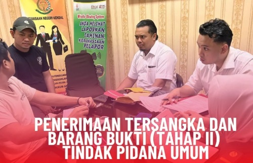 Pada hari Rabu tanggal 04 Februari 2026 sekira pukul 12.00 WIB, Kejaksaan Negeri Kendal menerima pelimpahan Tersangka dan Barang Bukti dari Penyidik Direktorat Reserse Kriminal Umum Kepolisian Daerah Jawa Tengah yang diperiksa oleh Jaksa Penuntut Umum Fandy Ahmad, S.H. serta didampingi oleh staff Pemulihan Aset dan Pengelolaan Barang Bukti, atas nama Terdakwa Figo Febriano Bin Taufik Ariyanto yang didakwa Pertama melanggar Pasal 426 Ayat (1) huruf a UU Nomor 1 Tahun 2023 Tentang KUHP atau Kedua melanggar Pasal 426 Ayat (1) huruf a UU Nomor 1 Tahun 2023 tentang KUHP.