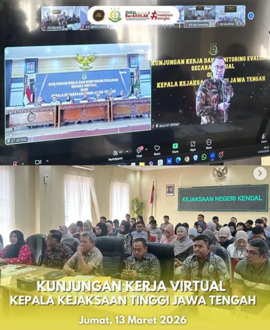 Jumat tanggal 13 Maret 2025 pukul 09.00 WIB, bertempat di Aula Kejaksaan Negeri Kendal Kepala Kejaksaan Negeri Kendal Dr. Ahmad Hajar Zunaidi, S.H., M.H., beserta seluruh Pegawai Kejaksaan Negeri Kendal mengikuti Kunjungan Kerja dan Monitoring Evaluasi Kepala Kejaksaan Tinggi Jawa Tengah secara virtual.