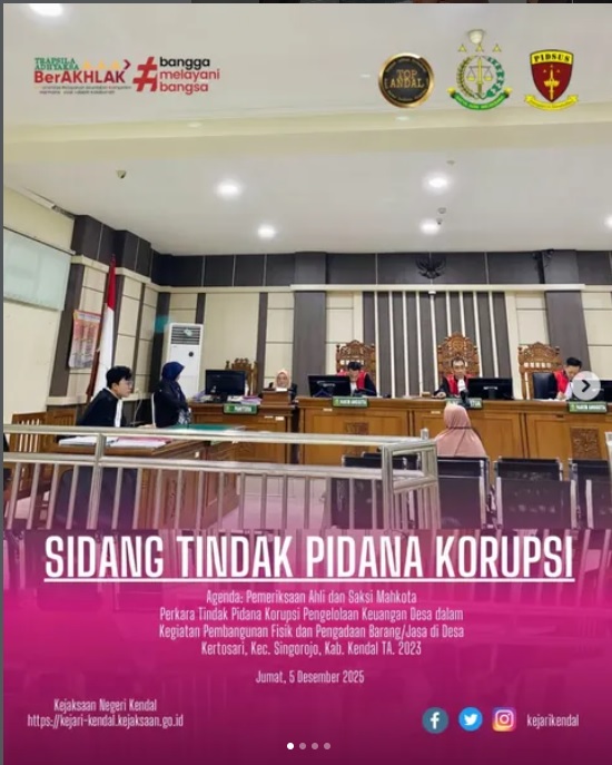Senin, 8 Desember 2025 pukul 09.00 WIB, bertempat di Aula Kejaksaan Negeri Kendal, Kepala...
