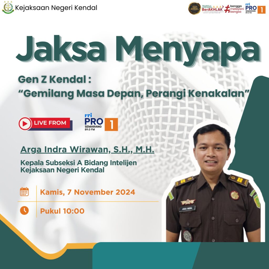 Kejaksaan Negeri Kendal Kembali akan melaksanakan Program Jaksa Menyapa dengan tema “Gemilang Masa Depan,...